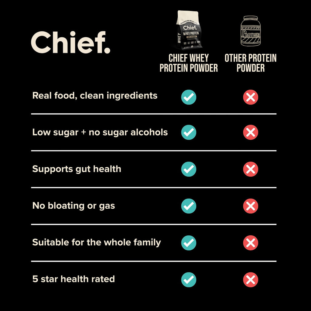 100% grass-fed Australian whey protein concentrate — no flavours, sweeteners or gums.