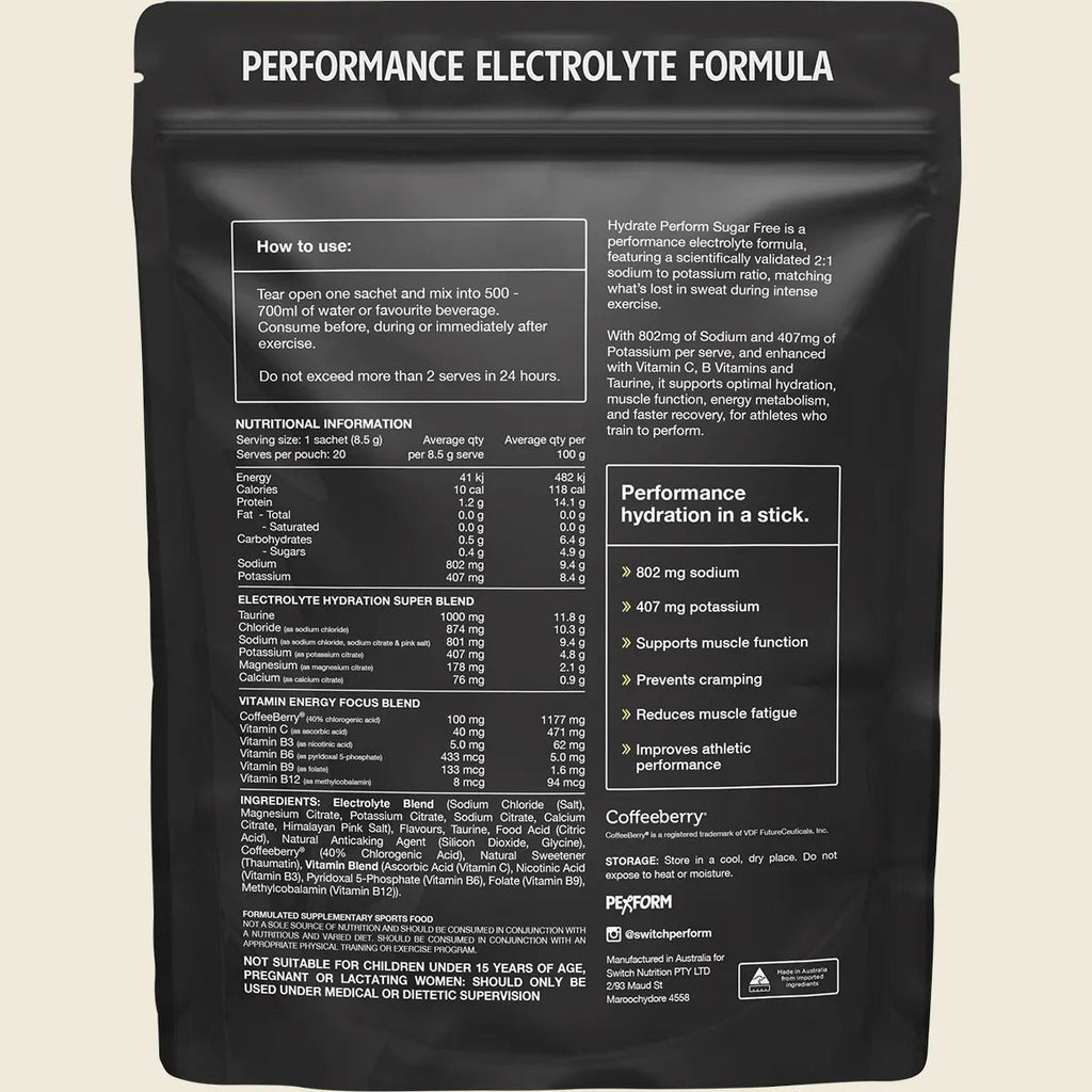 Hydration matters. Performance depends on it. Choose Switch Nutrition Hydrate Perform Sugar Free to train, race, and recover with confidence.