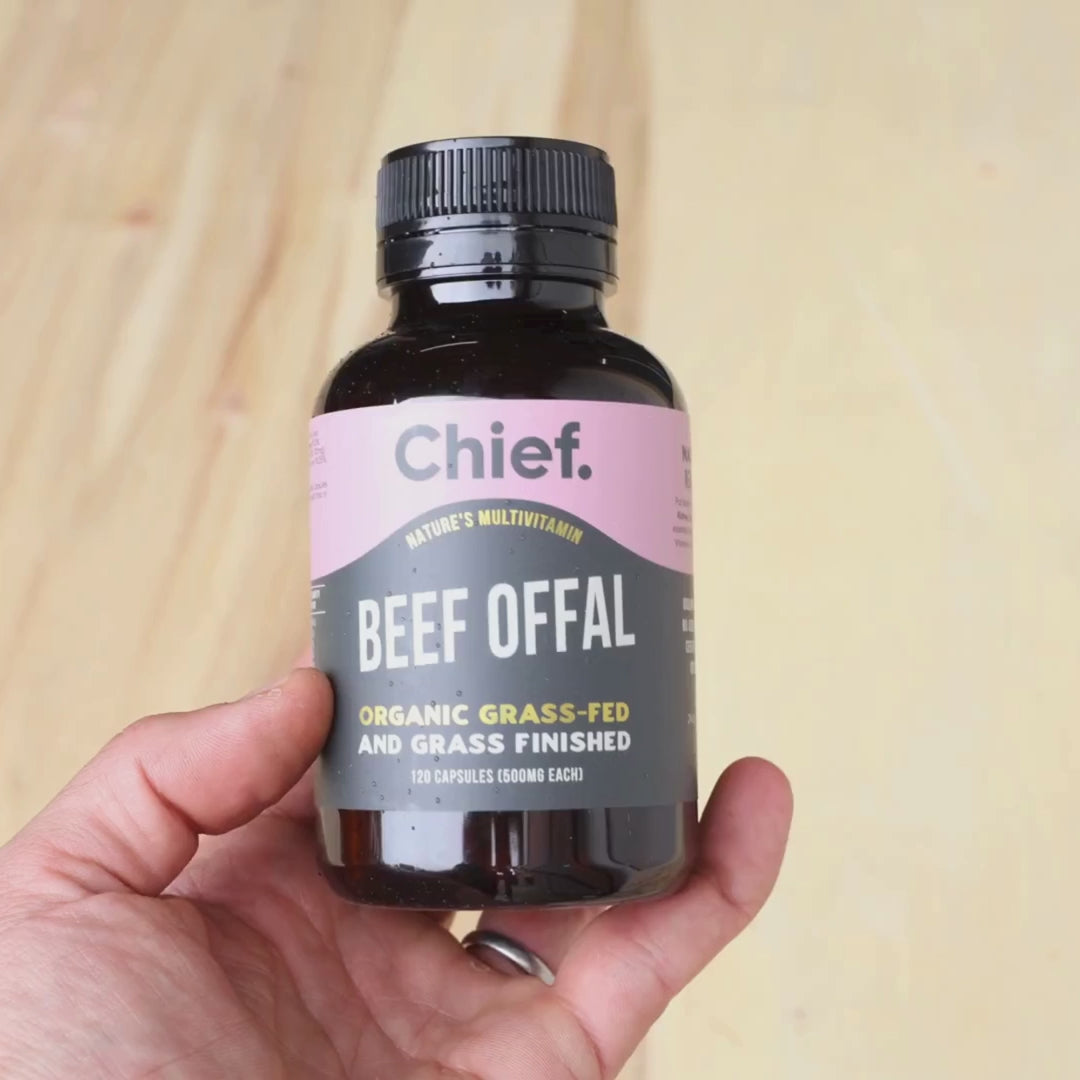 Put back the nutrients modern diets leave out with Beef Liver, Kidney, Heart, Spleen and Tripe providing a broad range of essential vitamins and minerals including Iron, Copper, Selenium, Vitamin A, Vitamin B3 (Niacin), Vitamin B9 (Folate), Vitamin B12, Vitamin C and Choline. Not many people like the taste of organ meats so this encapsulated product enables you to get the benefits without the taste!