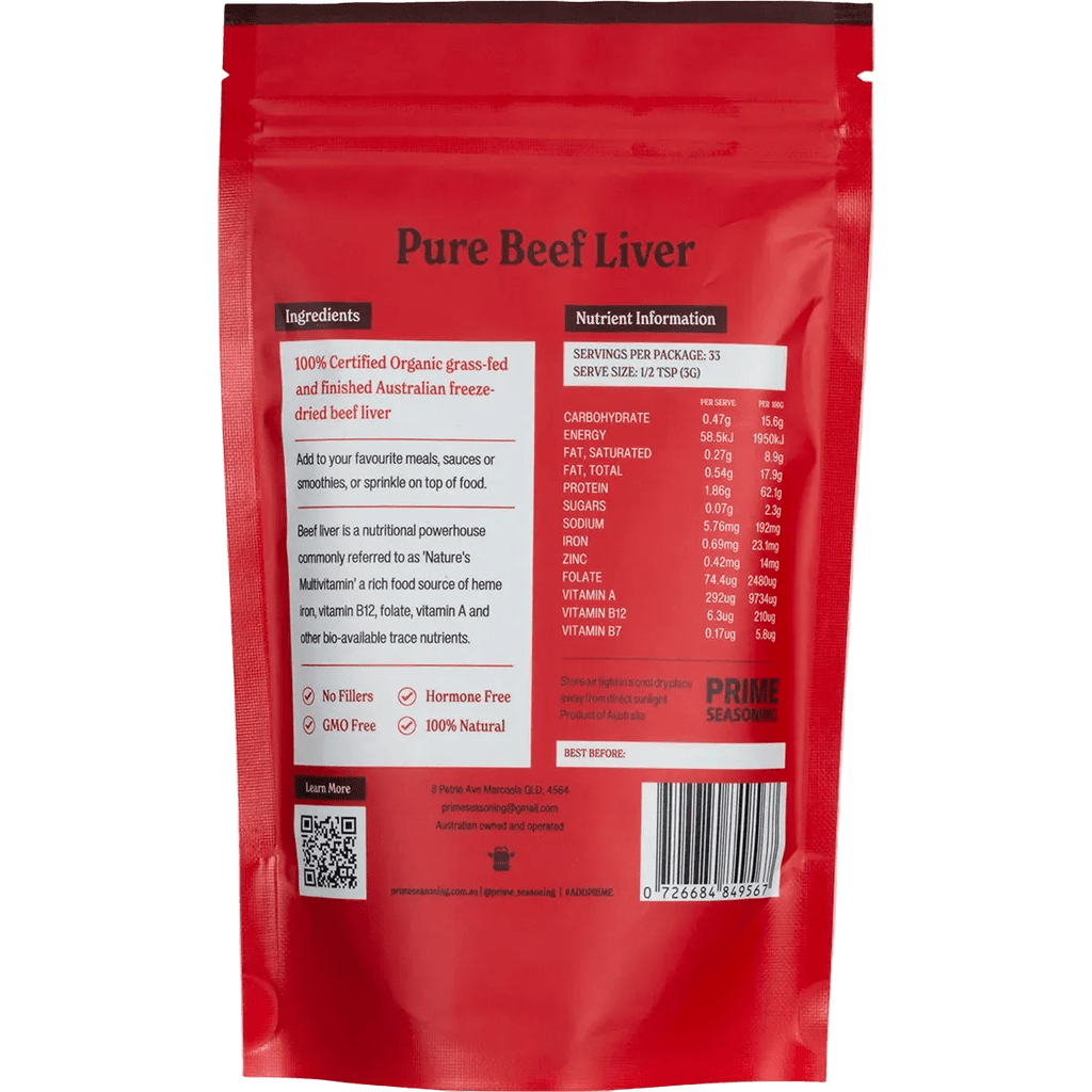 100% Certified Organic Grass-Fed and Finished Australian Freeze-Dried Beef Liver.