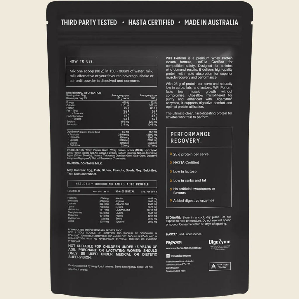Switch WPI Perform is for athletes who want clean protein, fast recovery, and absolute confidence in what’s in the tub.