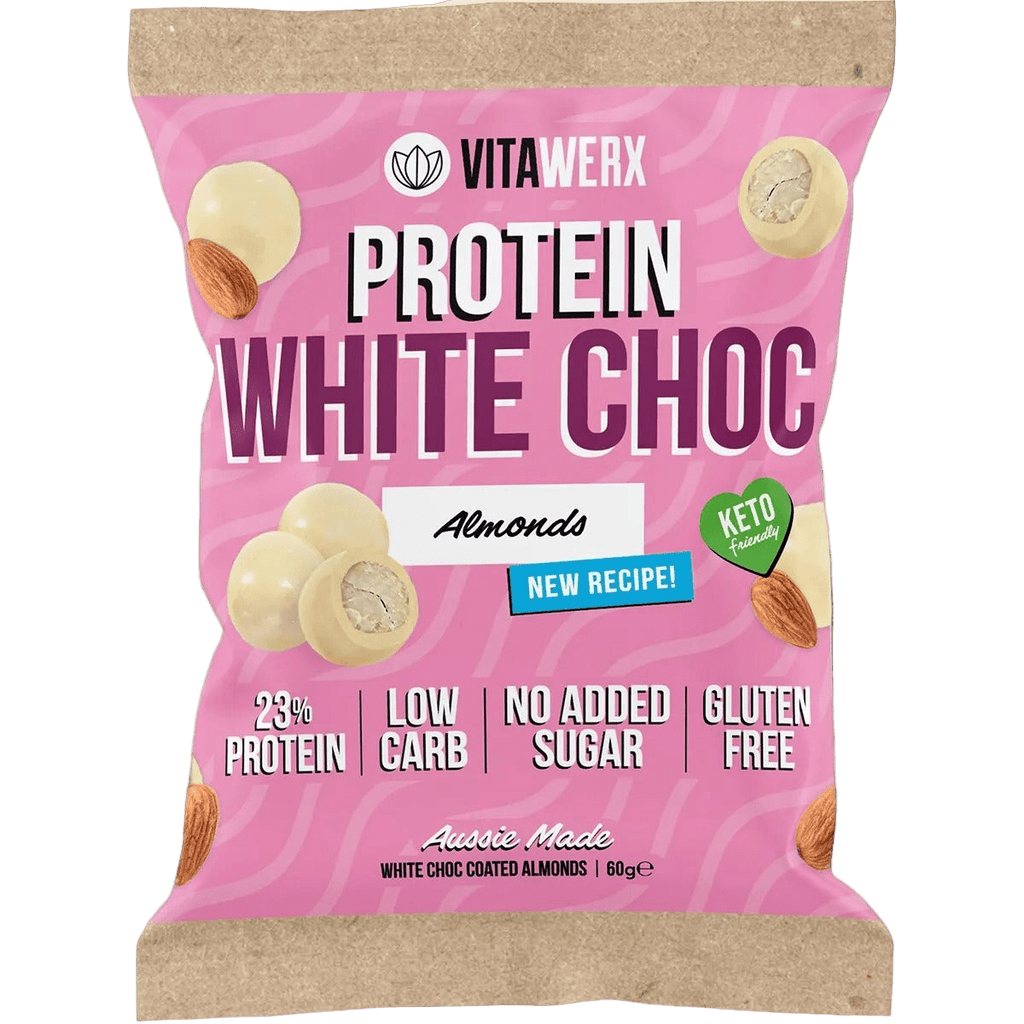 Choc [Vegetable Fat, Protein Powders 25% (Whey Protein Isolate (Milk), Milk Protein Isolate), Natural Sweetener (Erythritol),Milk Solids, Inulin, Emulsifier (Sunflower Lecithin), Natural Flavour, Natural Sweetener (Thaumatin)], Almonds 25%, Glazing Agent (Gum Arabic).