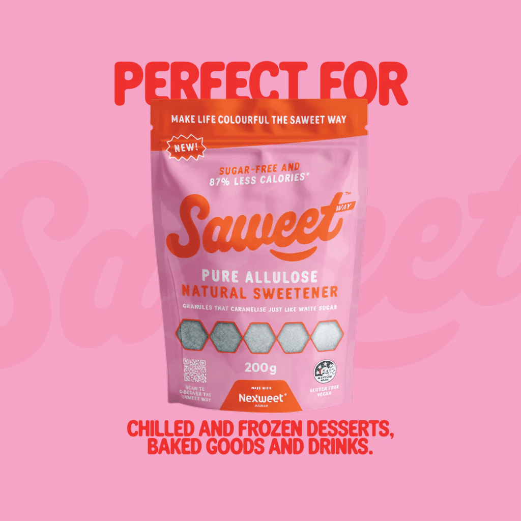 Meet your new pantry staple. Saweet WaY 100% Pure Allulose Granules look, taste, and bake just like sugar—only better for your body. With 87% fewer calories and no weird aftertaste, it’s a go-to for cakes, biscuits, slices, muffins, coffees, and everything in between.