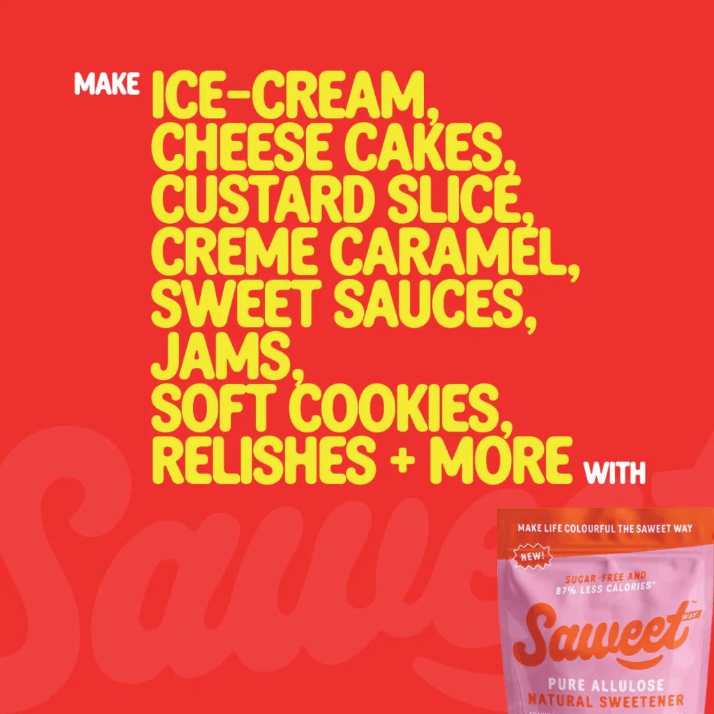 Important note: Current stock of Saweet WaY Allulose Granules is a very fine powder, similar in texture to icing sugar. This may look different from standard sugar crystals shown in some images, but it performs the same in recipes — caramelising, browning and sweetening beautifully.