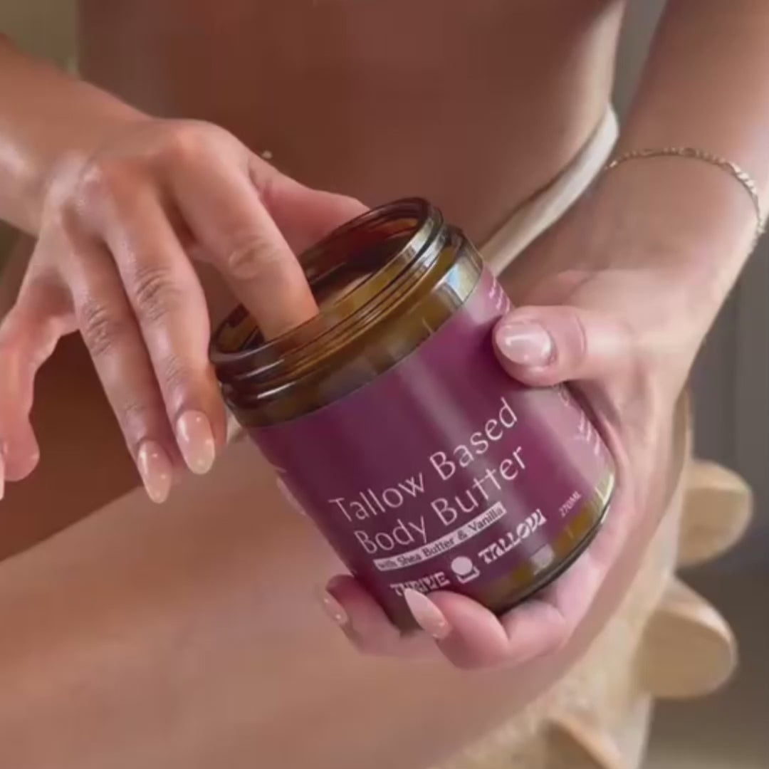 Thrive Tallow Body Butter can also be used sparingly on the face if desired, depending on individual skin type and preference.