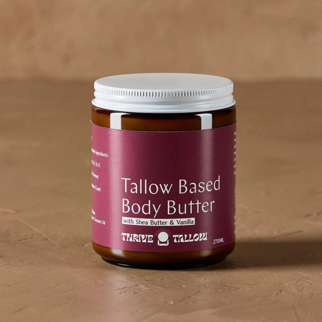 Wrap your skin in rich, tallow-based moisture. Thrive Tallow Body Butter delivers deep, long-lasting hydration with a silky, ultra-nourishing finish for soft, smooth and glowing skin from head to toe.
