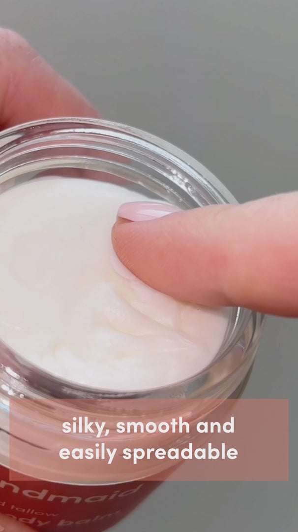 Handmaid Whipped Tallow Balm is a silky, multi-use face and body moisturiser made with just three natural ingredients: locally sourced 100% grass-fed tallow, certified organic jojoba oil, and (in scented options) pure essential oils. Suitable for all skin types and all ages, a little goes a long way to nourish, soften and protect skin from head to toe.